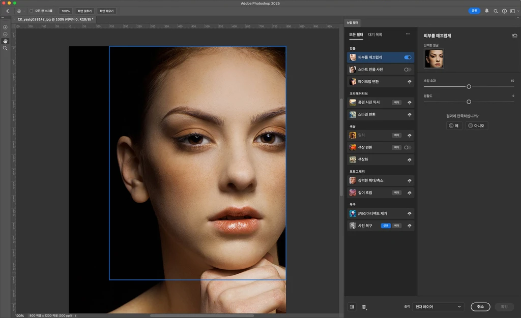 인물사진일 경우 대상의 얼굴을 AI가 인식하고, 피부를 매끄럽게 보정해 주는데요. 얼굴의 표정이나 시선까지도 변경이 가능해요.