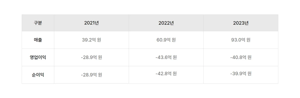 • 2021-2023년 연평균 성장률: 54% (39.2억 → 60.9억 → 93.0억)