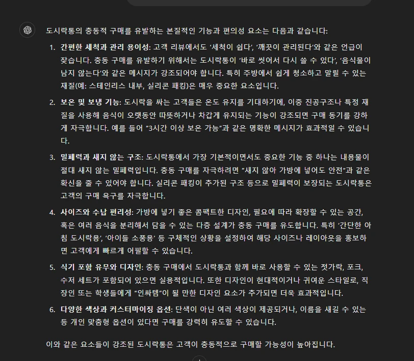 도시락 , 위생 , 밀폐 , 보온 키워드를 넣고
