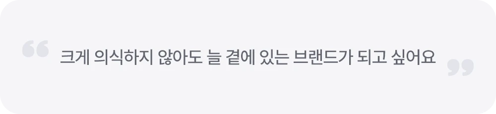 무엇보다 최종우 상무님의 브랜딩은 '일상'이라는 가치에 대한 끊임없는 고민의 과정이었어요. 특별함을 좇기보다 보편적인 가치에 주목했죠. 소비자의 일상에 자연스럽게 녹아들어 함께 호흡하겠다는 마음가짐, 이는 비즈니스를 하는 모든 사람들에게 하나의 좌표가 될 만한 것 같아요.