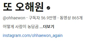 구독자 약 57만 명의 엔믹스 팬튜브 ‘또 오해원’ (사진: 또 오해원 유튜브 채널)