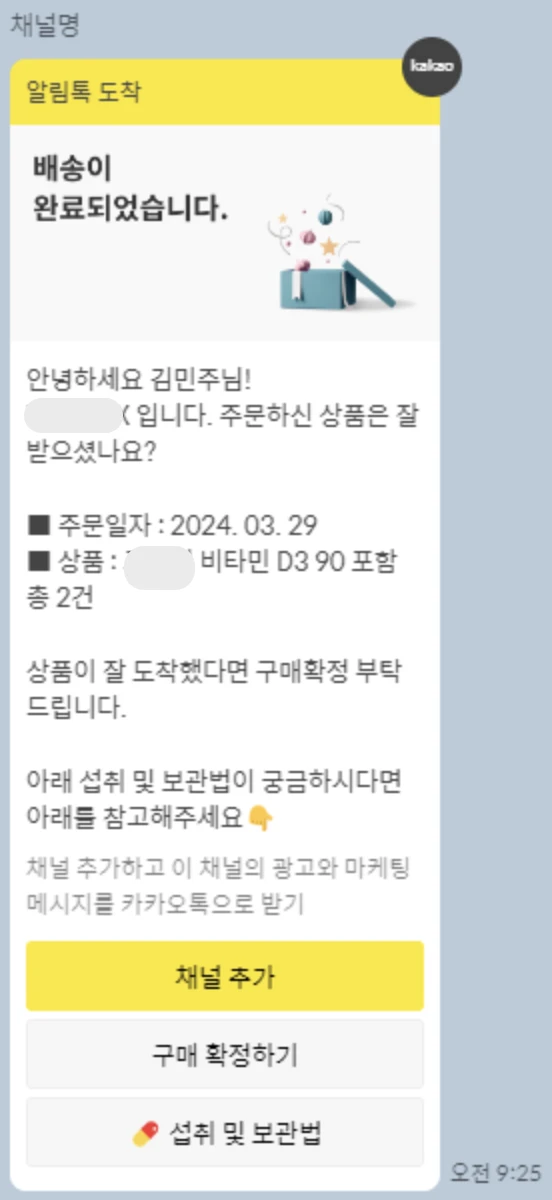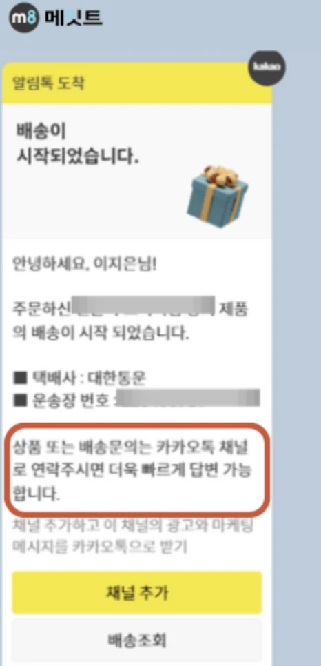 상품 또는 배송문의는 카카오톡 채널로 연락 주시면 더욱 빠르게 도움받으실 수 있습니다.