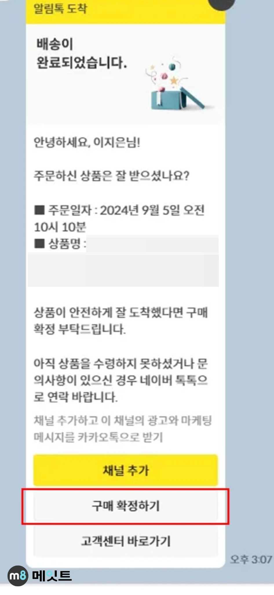 배송완료톡에 구매 확정하기 버튼을 함께 담아 보내면