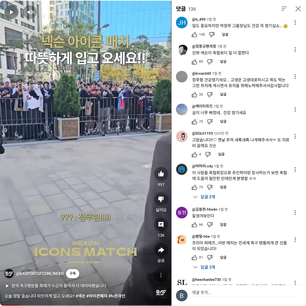 그러나 이번 넥슨 아이콘 매치는 유저들의 마음을 크게 바꿔놓았다. 기존의 논란이 많았던 이벤트 매치들과는 달리, 넥슨은 전야제부터 다양한 이벤트로 팬들에게 즐거움을 선사했다. 특히 본 경기에서는 레전드 선수들의 열정적인 플레이와 '해버지' 박지성의 출전 같은 감동적인 순간들이 더해져, 경기 후에도 많은 콘텐츠와 긍정적인 반응이 이어졌다.