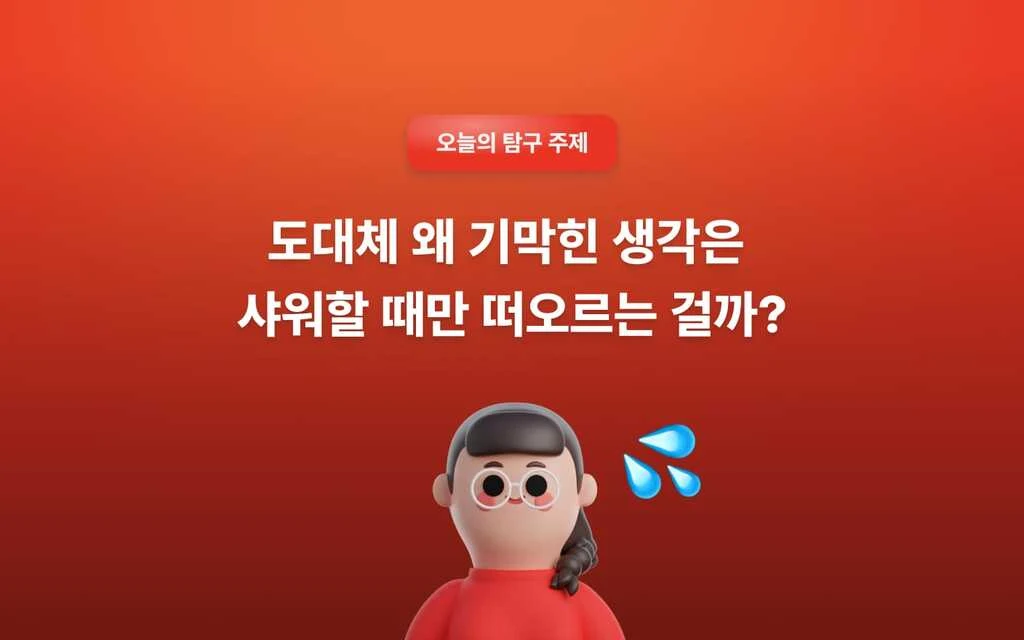 처음엔 저만 그런 줄 알았어요. 아니 사실 샤워랑 아이디어는 별 상관이 없어 보이잖아요. 근데 이 얘기를 꺼내니 주변에서 너도나도 그런 적이 있다는 거예요. 이쯤 되니 뭔가 저만 해당되는 이야기는 아니라는 생각이 들었어요.