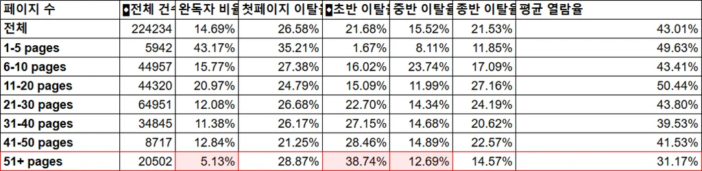 특히 1-5페이지 분량의 문서는 완독률이 무려 43.77%에 달했는데,