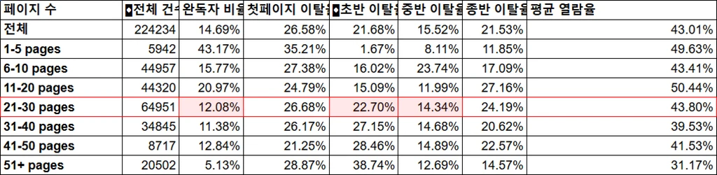 여기서부터는 문서가 끝날 때까지 완독률이 급 낮아지기 시작합니다.