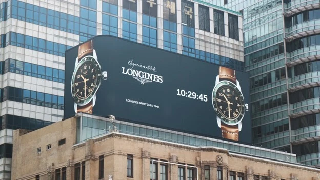 특히 이번 광고는 실시간으로 현재 시간을 빌보드에 표시하는 동시에, 시계의 분침과 초침이 실제 시간에 맞춰 움직이도록 구성되어 사람들의 주목을 끌었습니다. 단순한 제품 광고가 아닌 시계 브랜드의 정체성을 명확히 보여주는 방식으로, 프리미엄 시계 브랜드인 론진의 브랜드 가치를 잘 담아냈습니다.