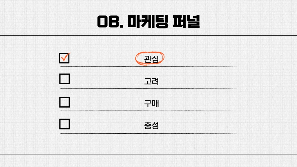 문제 8: B2B에서는 마케팅 '퍼널'이 중요해요. Awareness(인지) 다음으로 적절한 마케팅 퍼널 단계는?