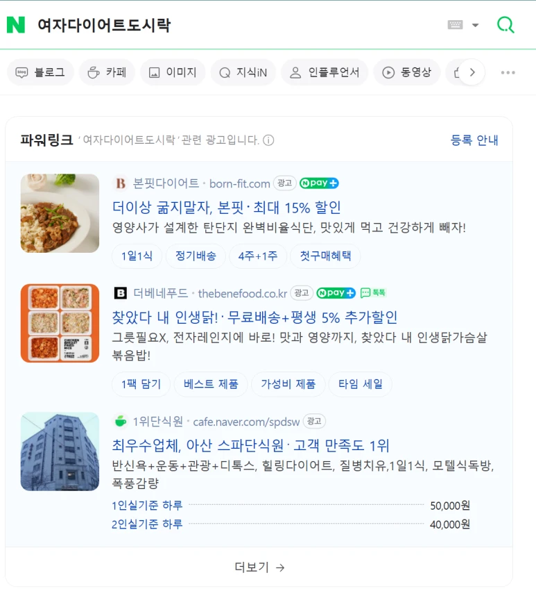 어?! 안티에이징 화장품은 파워링크 광고가 10개 이고, 린매스업 식단하고 여자다이어트도시락은 광고 개수가 적네요?! 왜 그럴까요?