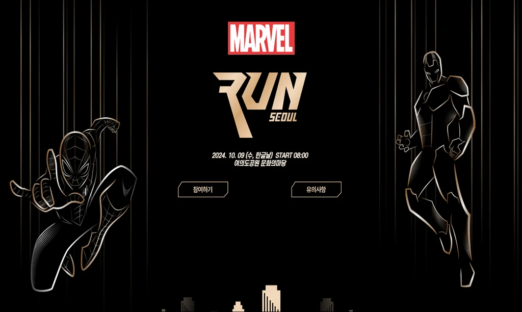 최근 인기를 끌었던 이색 러닝 행사로 디즈니코리아가 10월 9일 진행한 '2024 마블런 서울' 이야기를 해볼게요. 먼저 이 행사는 5km와 10km 구간을 달리는 이벤트인데, 남녀노소 모두 참여할 수 있도록 제한을 풀었어요.