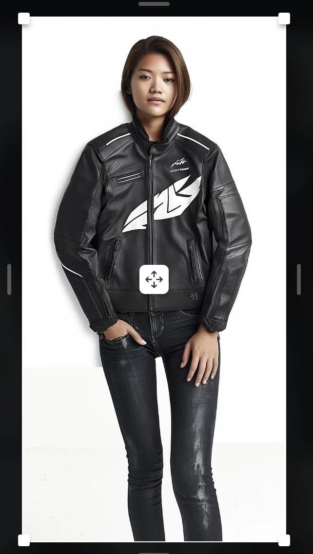 여기에 우리가 가공할 이미지를 올려 봅시다. 저는 발렌시아가 2024 스트리트 꾸뛰르가 최근에 인상 깊어서, 여성 패션 중 한국에서 판매하는 '여성 업사이클드 레이서 재킷 블랙'과 유사한 샘플을 통해 이미지를 제작해보기로 했습니다.