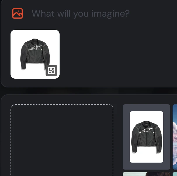 상단의 프롬프트란에서 이미지 부분을 누르면 Choose a file or drop it here이 나오게 됩니다. 우측에는 그동안 올렸던 이미지들이 에셋(Asset)으로 올라와있습니다.