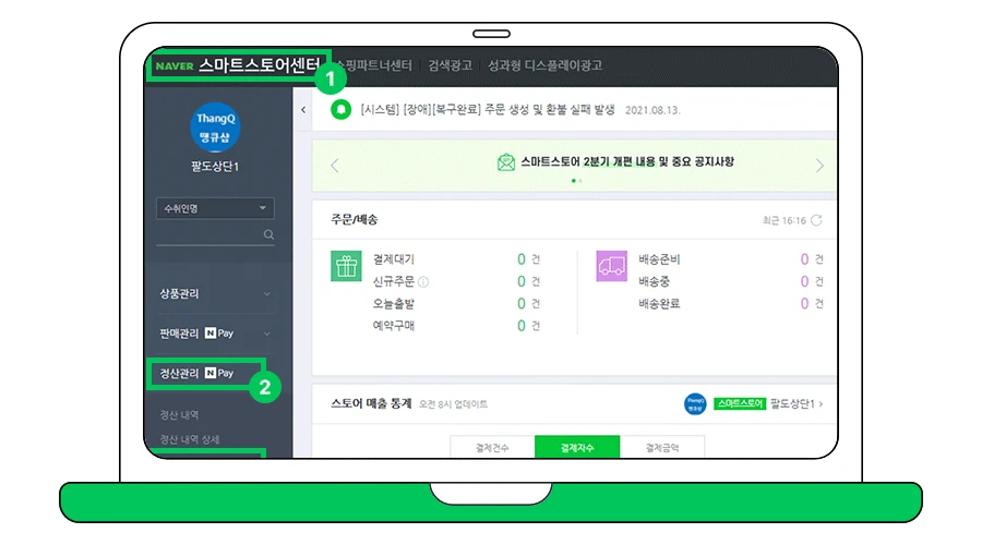 이렇게 스마트 스토어에서 주문 데이터에 따라