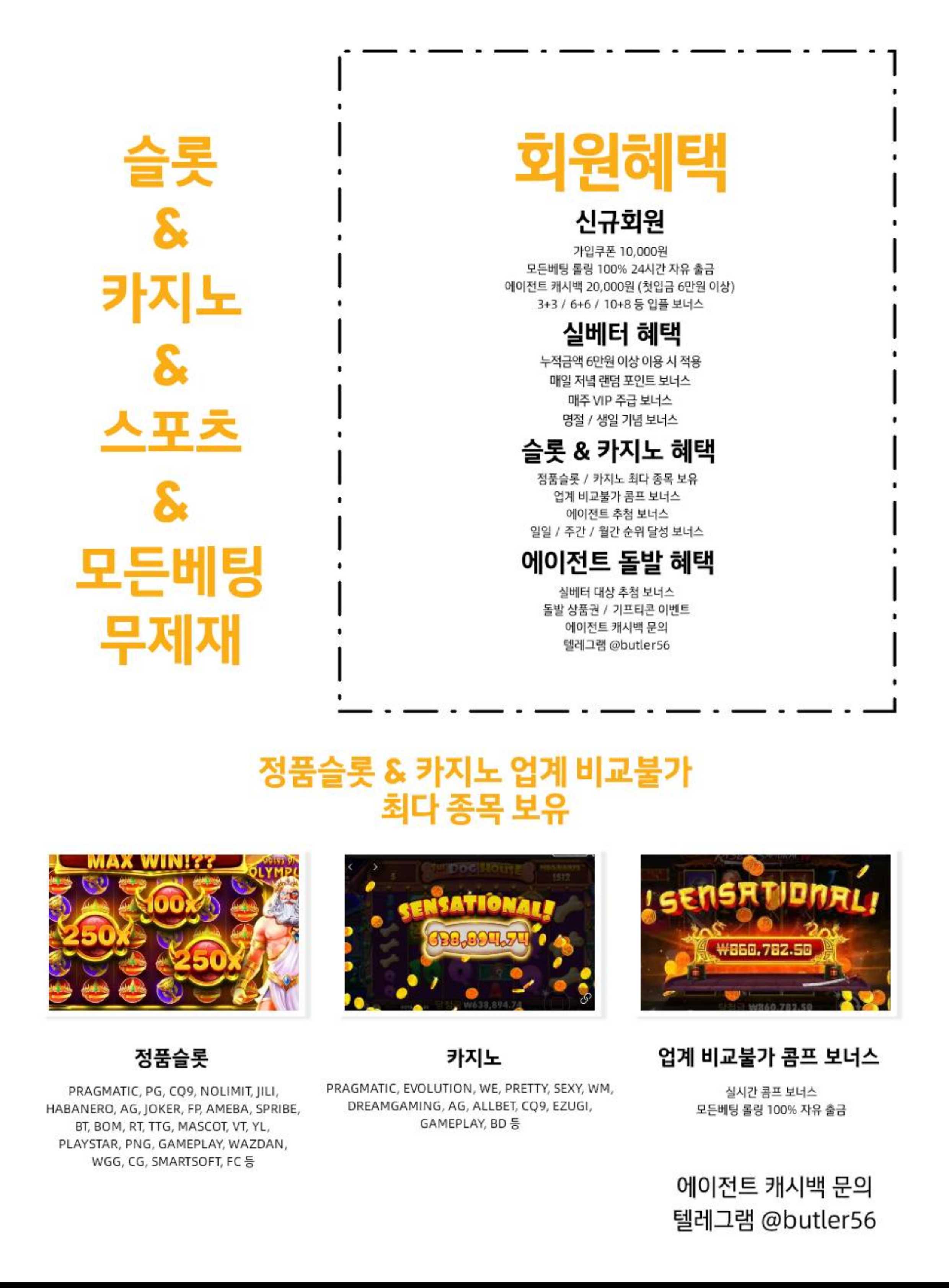♥가입쿠폰 10,000원 & 캐시백 20,000원 정품슬롯 & 카지노 & 스포츠